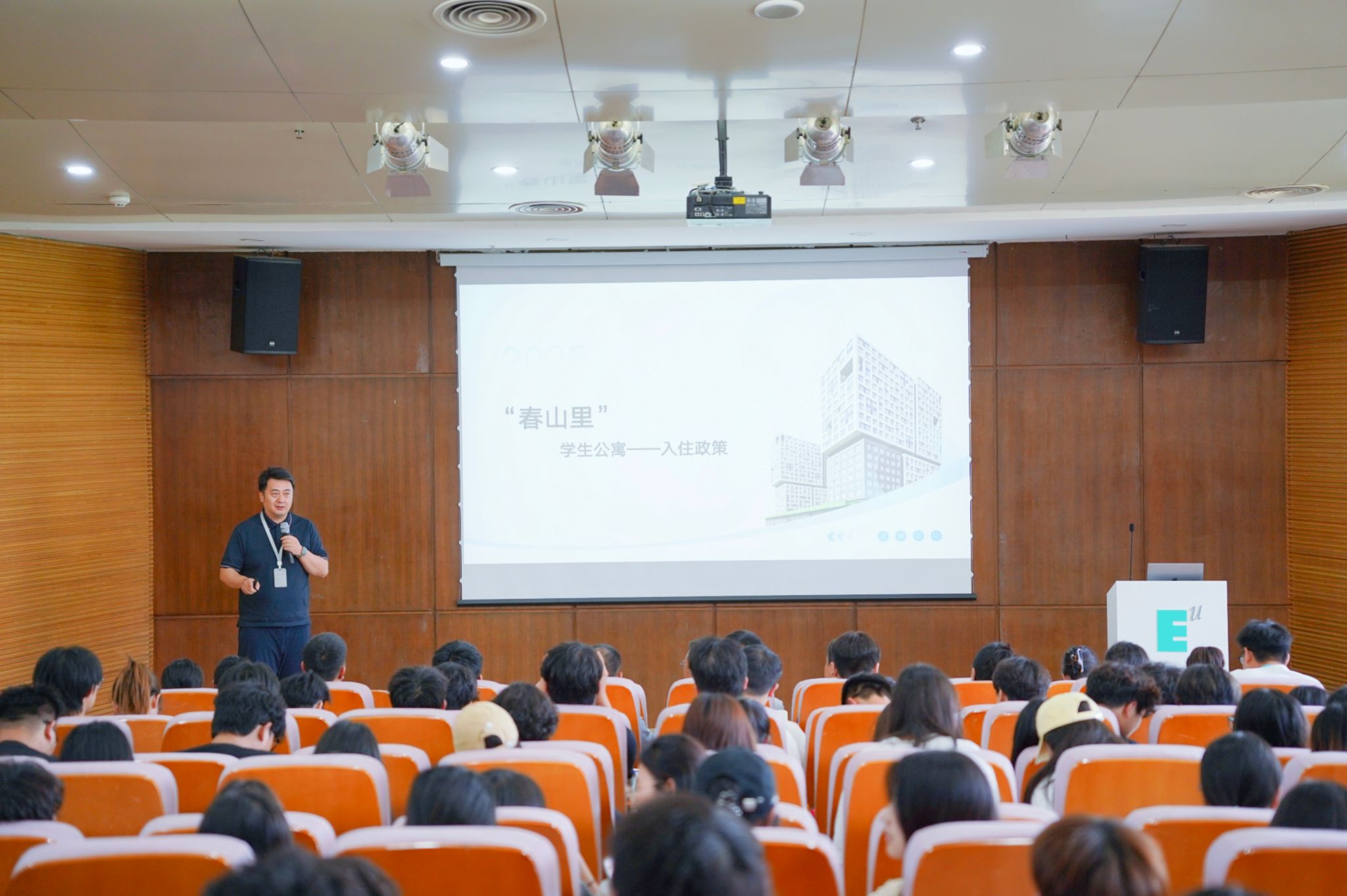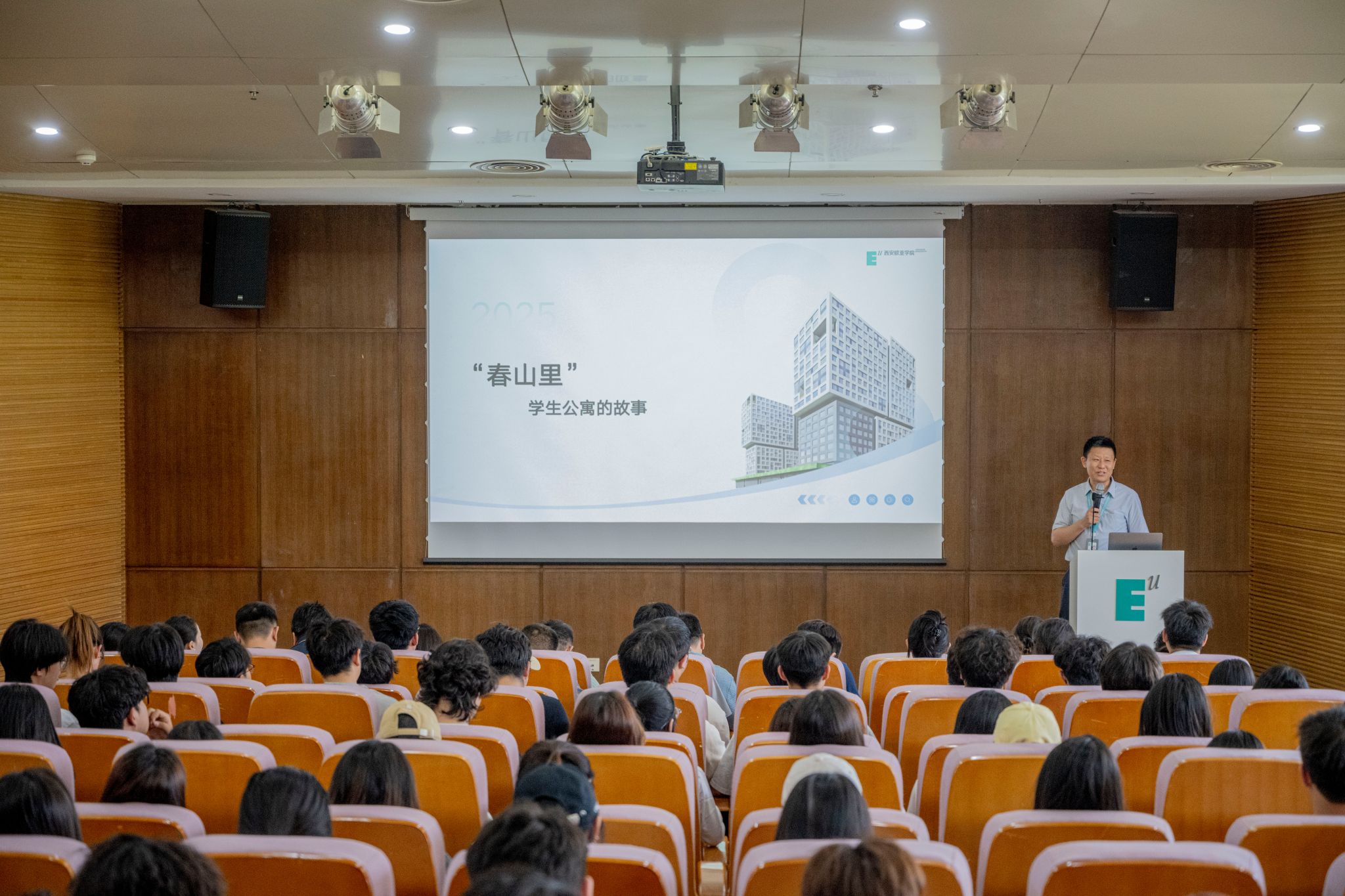 5月28日下午,西安歐亞學(xué)院《春山里學(xué)生公寓的故事》在圖書(shū)館學(xué)術(shù)報(bào)告廳正式拉開(kāi)帷幕。董事長(zhǎng)胡建波教授為學(xué)生帶來(lái)一場(chǎng)建筑美學(xué)+商科思維的精彩課程,基建處處長(zhǎng)雷春妮老師闡述“春山里”學(xué)生公寓的設(shè)計(jì)理念、內(nèi)部空間,學(xué)生發(fā)展處張成老師向同學(xué)們介紹本次“春山里”學(xué)生公寓預(yù)選指南?;顒?dòng)由學(xué)生發(fā)展處處長(zhǎng)董楊老師主持,青年社區(qū)輔導(dǎo)員、導(dǎo)生等共計(jì)260 余人齊聚,共同開(kāi)啟這場(chǎng)春山里學(xué)生公寓的故事。