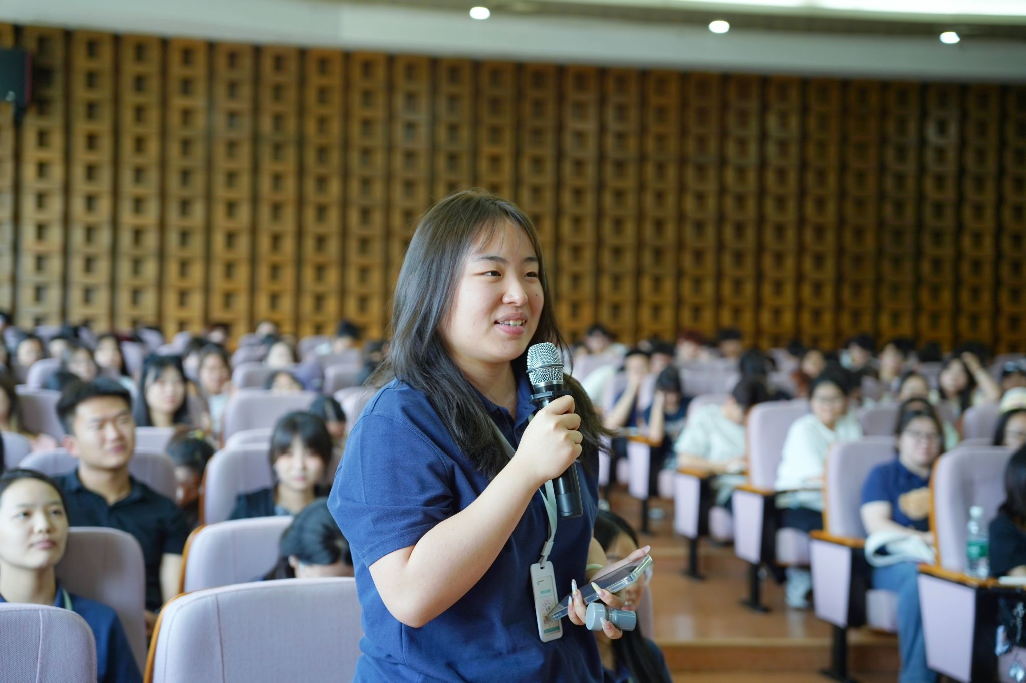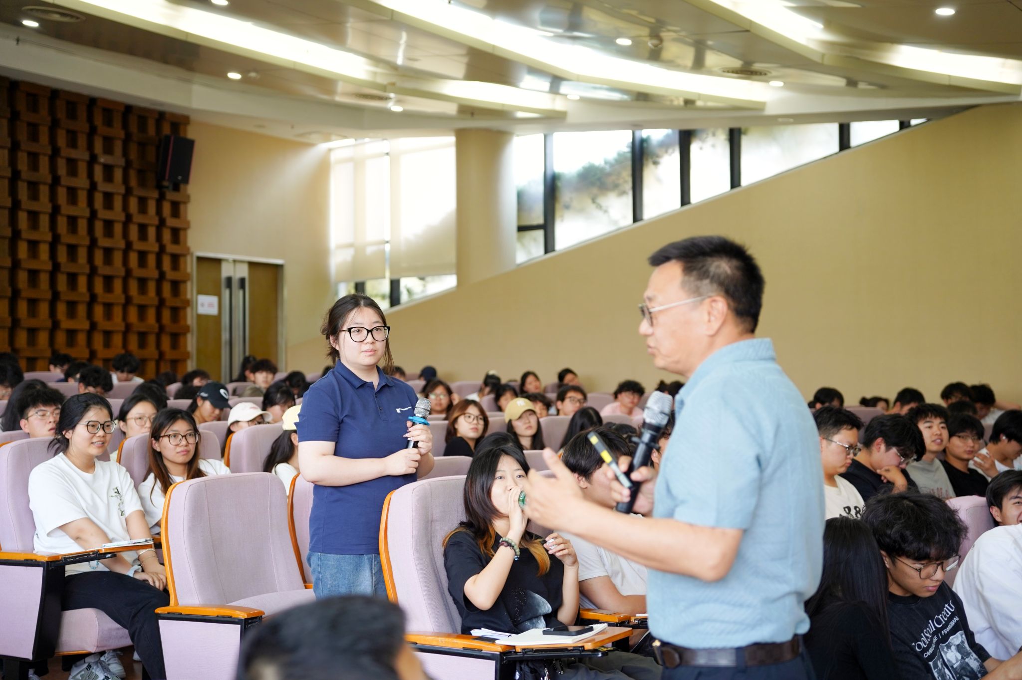 學(xué)生在活動(dòng)現(xiàn)場(chǎng)與胡董事長(zhǎng)互動(dòng)