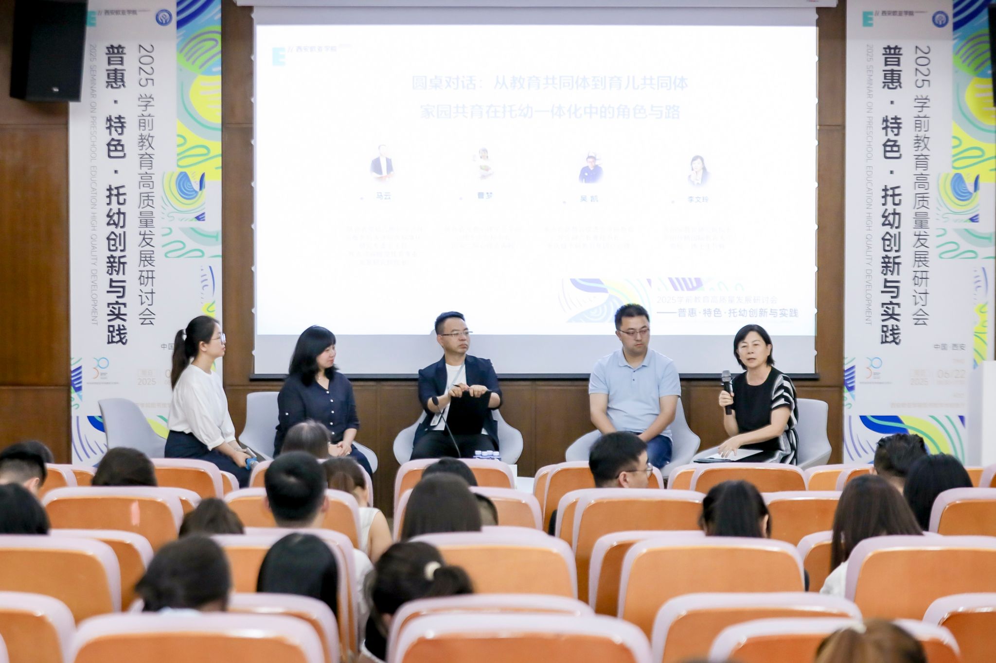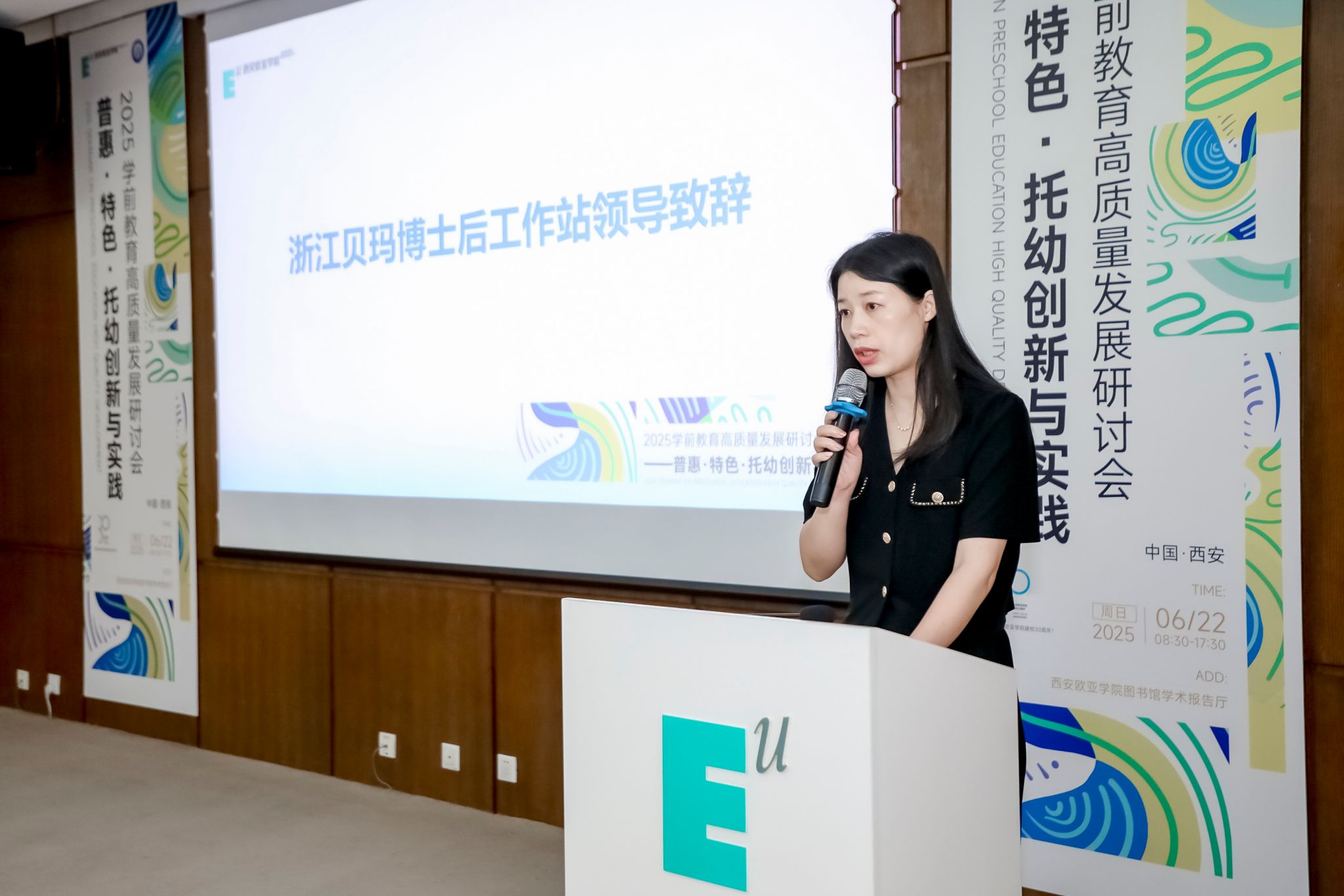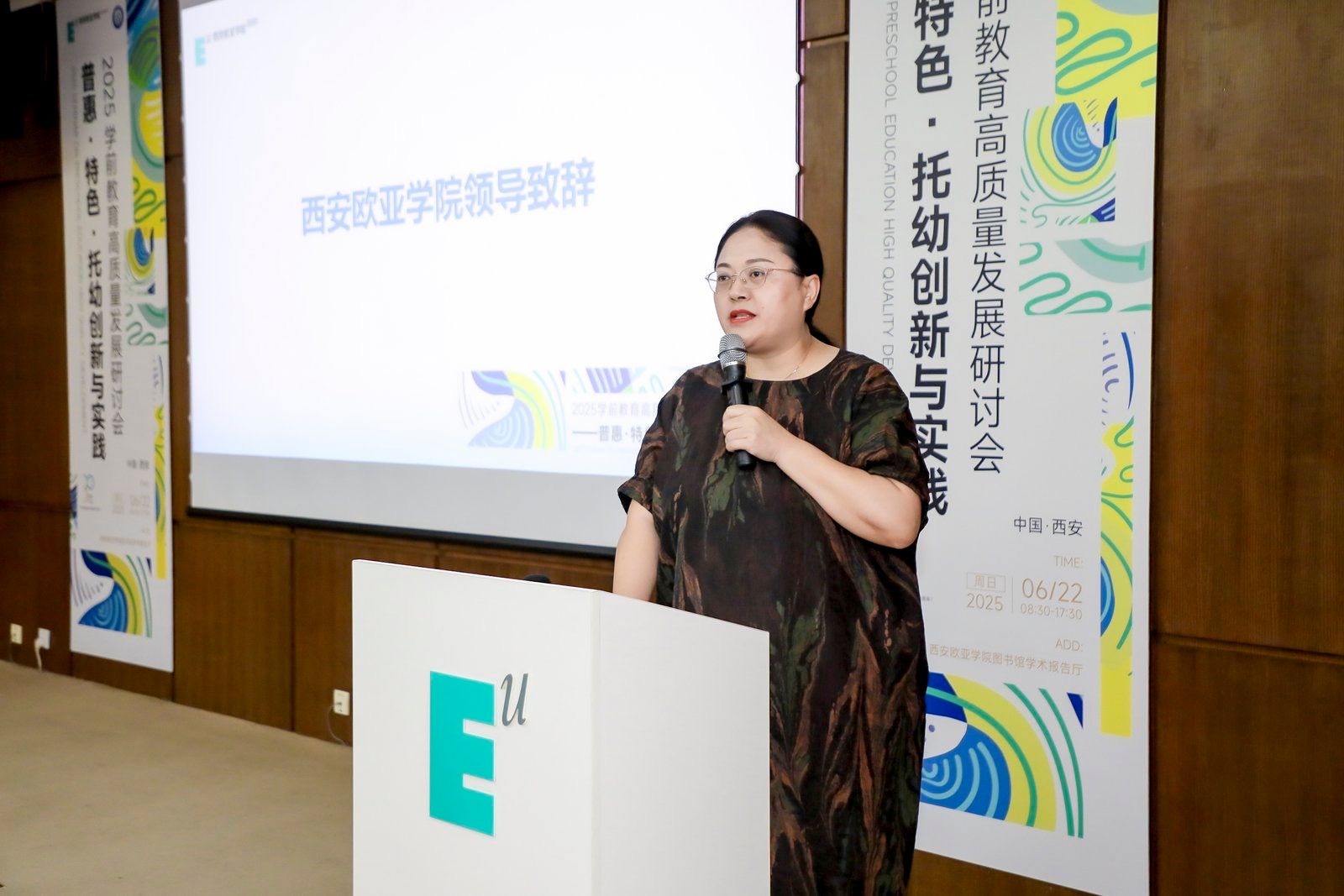 2025年6月22日,人文教育學(xué)院以 “2025 學(xué)前教育高質(zhì)量發(fā)展 —— 普惠?特色?托幼創(chuàng)新與實(shí)踐”為主題,在歐亞學(xué)院圖書(shū)館報(bào)告廳奉獻(xiàn)了一場(chǎng)高質(zhì)量的學(xué)前教育研討會(huì)。本次研討會(huì)由西安歐亞學(xué)院人文教育學(xué)院與陜西省兒童心理學(xué)會(huì)聯(lián)合主辦、在浙江貝瑪教育博士后工作站支持下,來(lái)自東北師范大學(xué)、陜西師范大學(xué)、臺(tái)北教育大學(xué)等高校及研究機(jī)構(gòu)的專(zhuān)家和園長(zhǎng),圍繞著學(xué)前教育法解析、人口變化下幼兒園轉(zhuǎn)型之路、托幼創(chuàng)新等議題進(jìn)行深入交流。本次研討會(huì)吸引了來(lái)自全國(guó)各地160余名幼兒園園長(zhǎng)、教師以及100多名學(xué)前教育專(zhuān)業(yè)學(xué)生參加。會(huì)議期間,代表們還觀摩了學(xué)前教育學(xué)術(shù)季藝術(shù)展演和模擬建園項(xiàng)目式教學(xué),充分展現(xiàn)了歐亞學(xué)院人才培養(yǎng)的質(zhì)量、特色和創(chuàng)新。