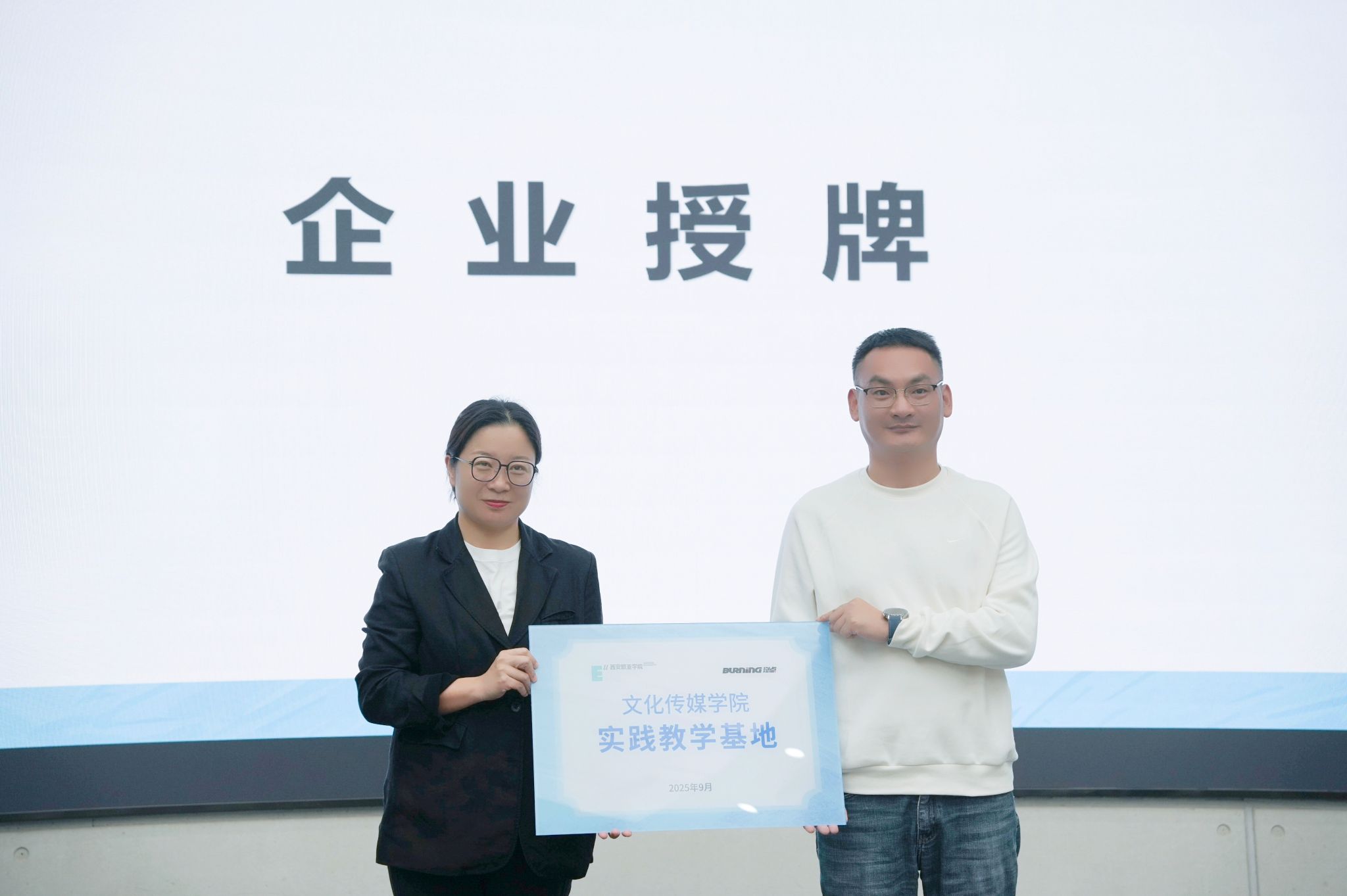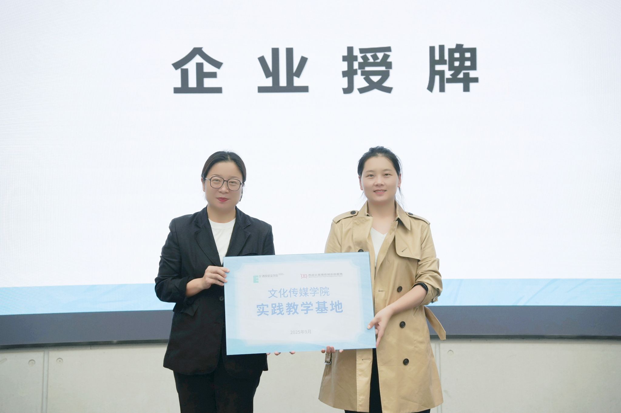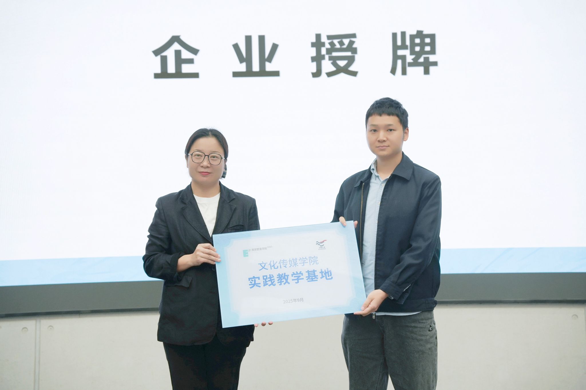 在授牌儀式上,文化傳媒學(xué)院副院長(zhǎng)曹小娟依次向北京童立方文化品牌管理有限公司、陜西秦之泉飲品集團(tuán)銷售有限公司、西安華商網(wǎng)絡(luò)傳媒有限公司、浙江燃點(diǎn)創(chuàng)新影視科技有限公司、華商傳媒風(fēng)華年文化發(fā)展有限公司共五家企業(yè)授予“實(shí)踐教學(xué)基地”牌匾,為學(xué)生構(gòu)建起直達(dá)行業(yè)現(xiàn)場(chǎng)的穩(wěn)定實(shí)踐平臺(tái)。學(xué)院將持續(xù)與多領(lǐng)域雇主企業(yè)深化合作,拓展多元實(shí)踐渠道,助力學(xué)生開闊視野、積累實(shí)戰(zhàn)經(jīng)驗(yàn)。