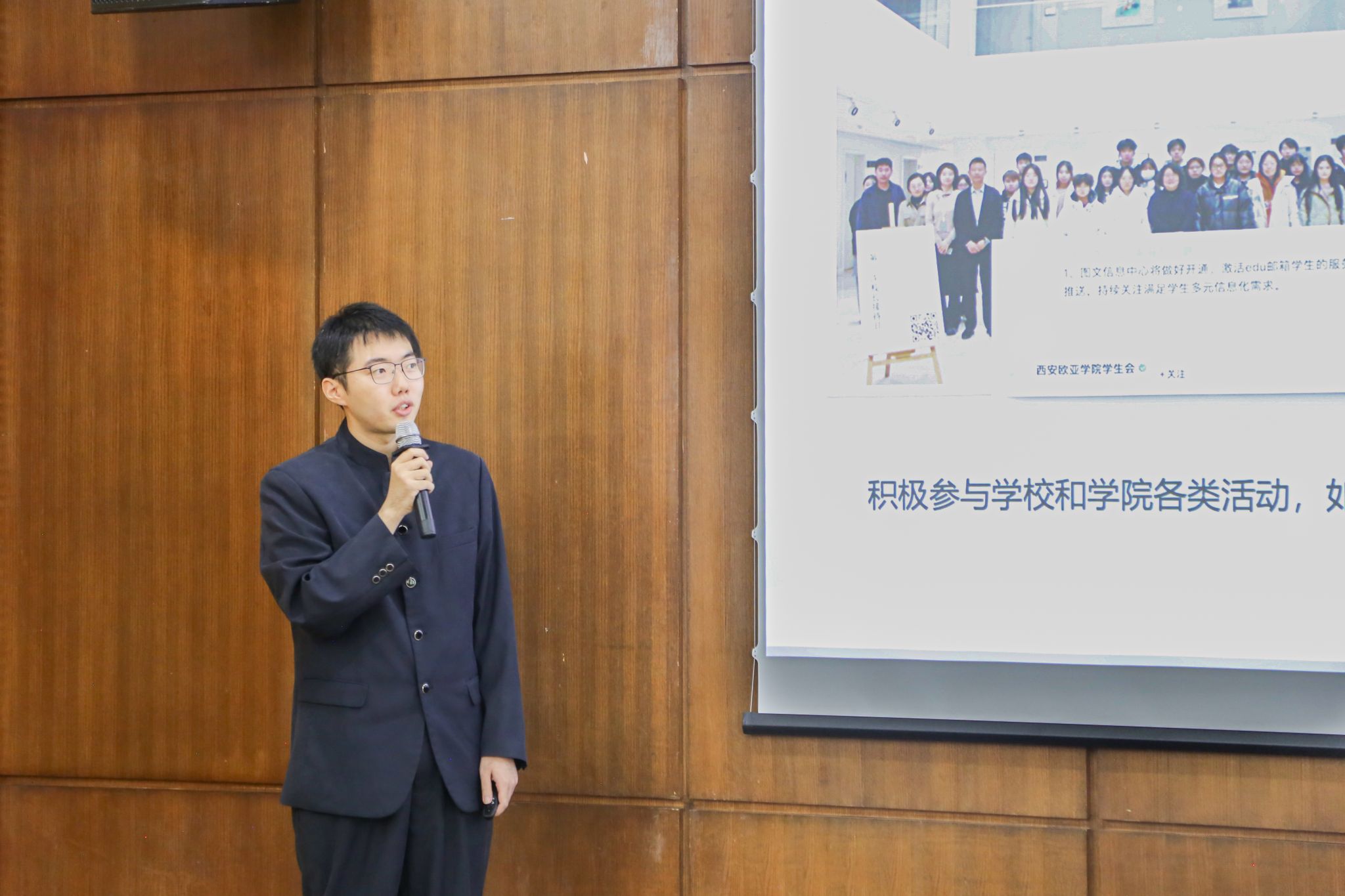 活動伊始,國家獎學金評審委員會副主任、學生發(fā)展處處長董楊老師為風采展致辭。他指出,國家獎學金是國家授予高校學生的崇高榮譽,其評審不僅關注學業(yè)成績,更是對候選人綜合素質(zhì)、創(chuàng)新精神與實踐能力的全面考量。教育的使命在于“喚醒”與“賦能”,而非簡單的“塑造”。他勉勵全體同學要從榜樣的事跡中汲取力量,明確自身發(fā)展方向,“認同腳下的路、認同同行的人、認同內(nèi)心的聲音”,在我校打造的國際化、應用型、新體驗的育人質(zhì)量內(nèi)涵中,勇敢追尋屬于自己的光芒,成為“重品格、會思考、善溝通”的全面發(fā)展人才。