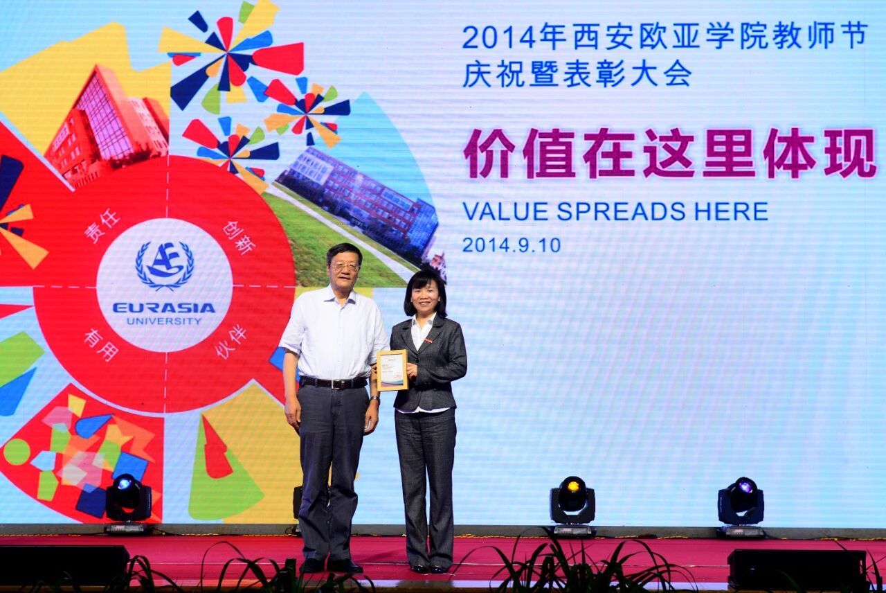 2014年教師節(jié)慶祝表彰大會(huì),宋粉鮮在領(lǐng)獎(jiǎng)臺(tái)上