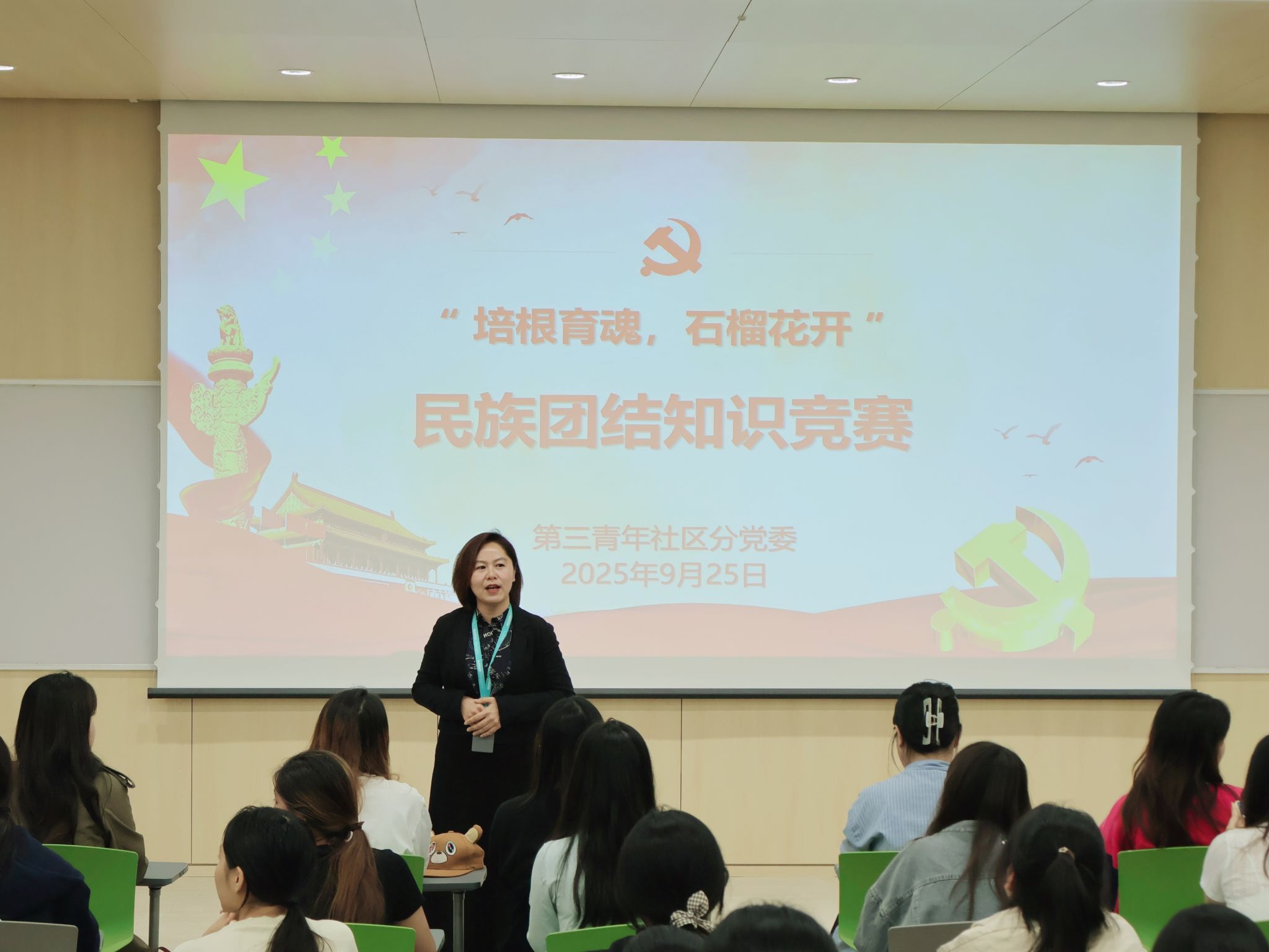 為深入學習宣傳民族理論政策與法律法規(guī),進一步引導廣大青年學生鑄牢中華民族共同體意識,增進對中華民族多元一體格局的認識,營造“民族團結一家親”的濃厚校園氛圍,第三青年社區(qū)分黨委于2025年9月25日成功舉辦了以“民族團結,籽籽同心”為主題的民族團結知識競賽活動。本次競賽活動精心設計了初賽和決賽兩個環(huán)節(jié),共計吸引了來自社區(qū)各年級的120余名同學踴躍參與。分黨委副書記張愛榮和新疆派駐教師朱蕾老師出席了本次活動。