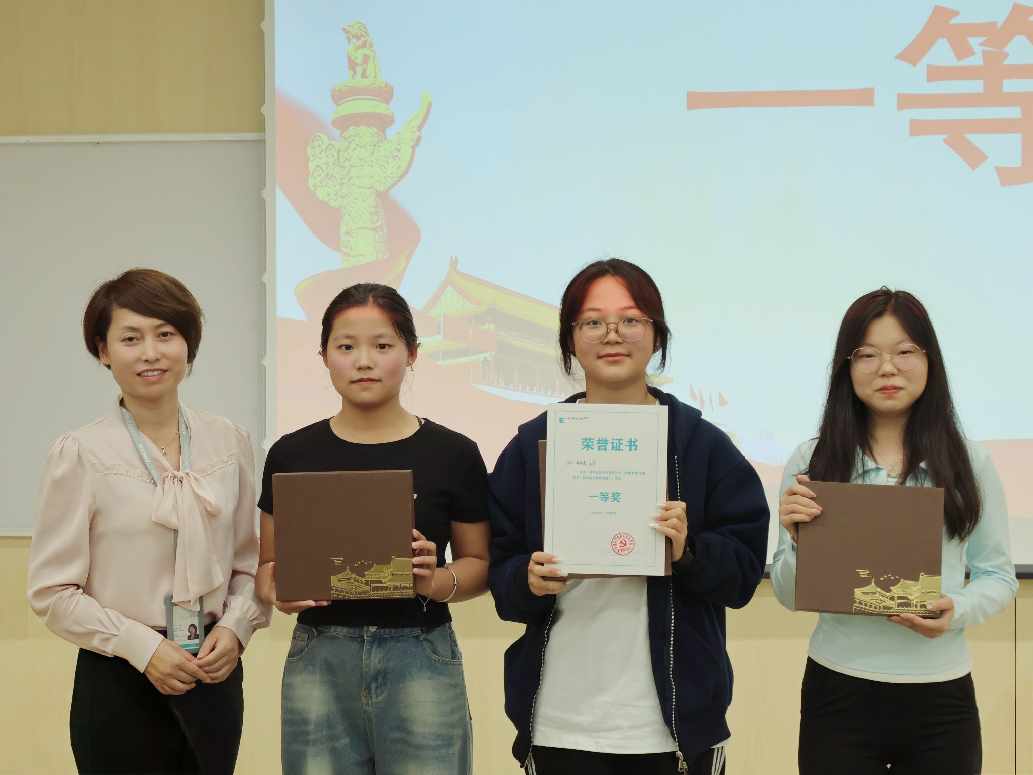 朱蕾老師對本次民族知識競賽進行現(xiàn)場點評。她首先對參賽選手的優(yōu)異表現(xiàn)給予了高度評價,她認為同學們民族知識扎實、競賽風貌良好,并鼓勵大家把競賽熱情延續(xù)到生活中,尊重各民族文化差異,以實際行動踐行民族團結,讓“民族團結,籽籽同心”的認識扎根于心。張愛榮老師對本次活動進行總結,她明確筑牢中華民族共同體意識的重要性,指出中國是多民族國家,五十六個民族有著不同的文化習俗,我們要通過了解這些差異并尊重這些差異來促進民族團結,因為民族團結是國家安全的基石。張老師希望在座的各民族同學們相互尊重,相互包容,像石榴籽一樣緊緊團結起來,為實現(xiàn)中華民族偉大復興而努力奮斗。