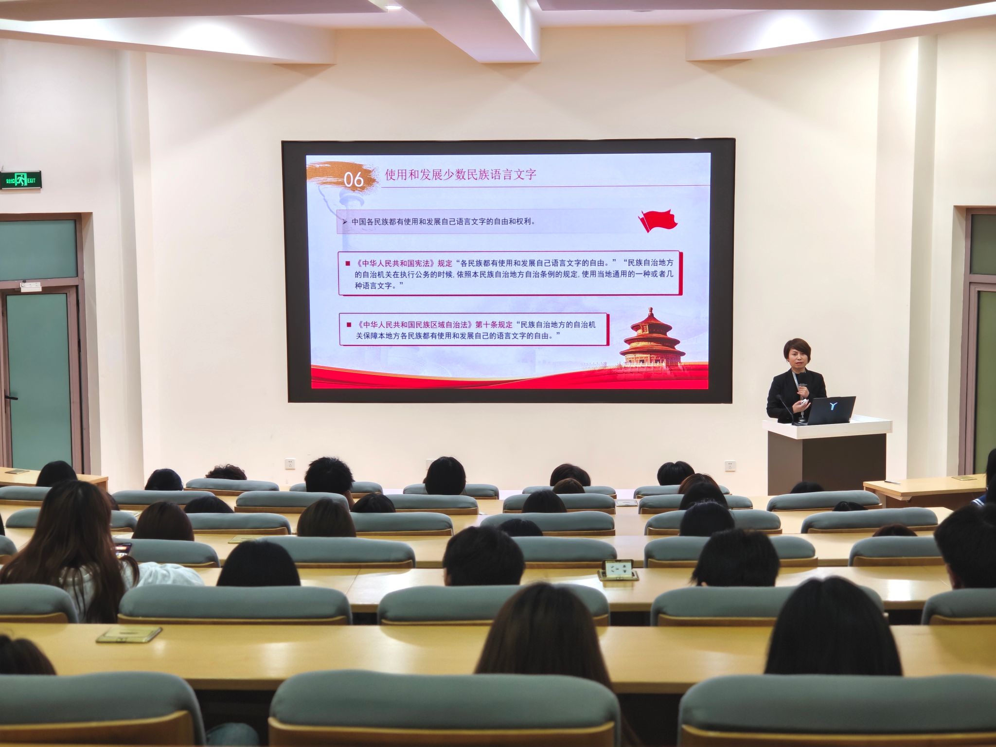 法律依據(jù)與現(xiàn)實(shí)意義,并結(jié)合具體案例,生動(dòng)闡釋了民族平等、民族團(tuán)結(jié)、各民族共同繁榮發(fā)展的基本方針。她還從經(jīng)濟(jì)支持、文化保護(hù)、語(yǔ)言文字使用、風(fēng)俗習(xí)慣尊重以及宗教信仰自由等多個(gè)維度,全面介紹了黨和國(guó)家為推動(dòng)民族地區(qū)發(fā)展、保障各民族合法權(quán)益所采取的一系列重要舉措。