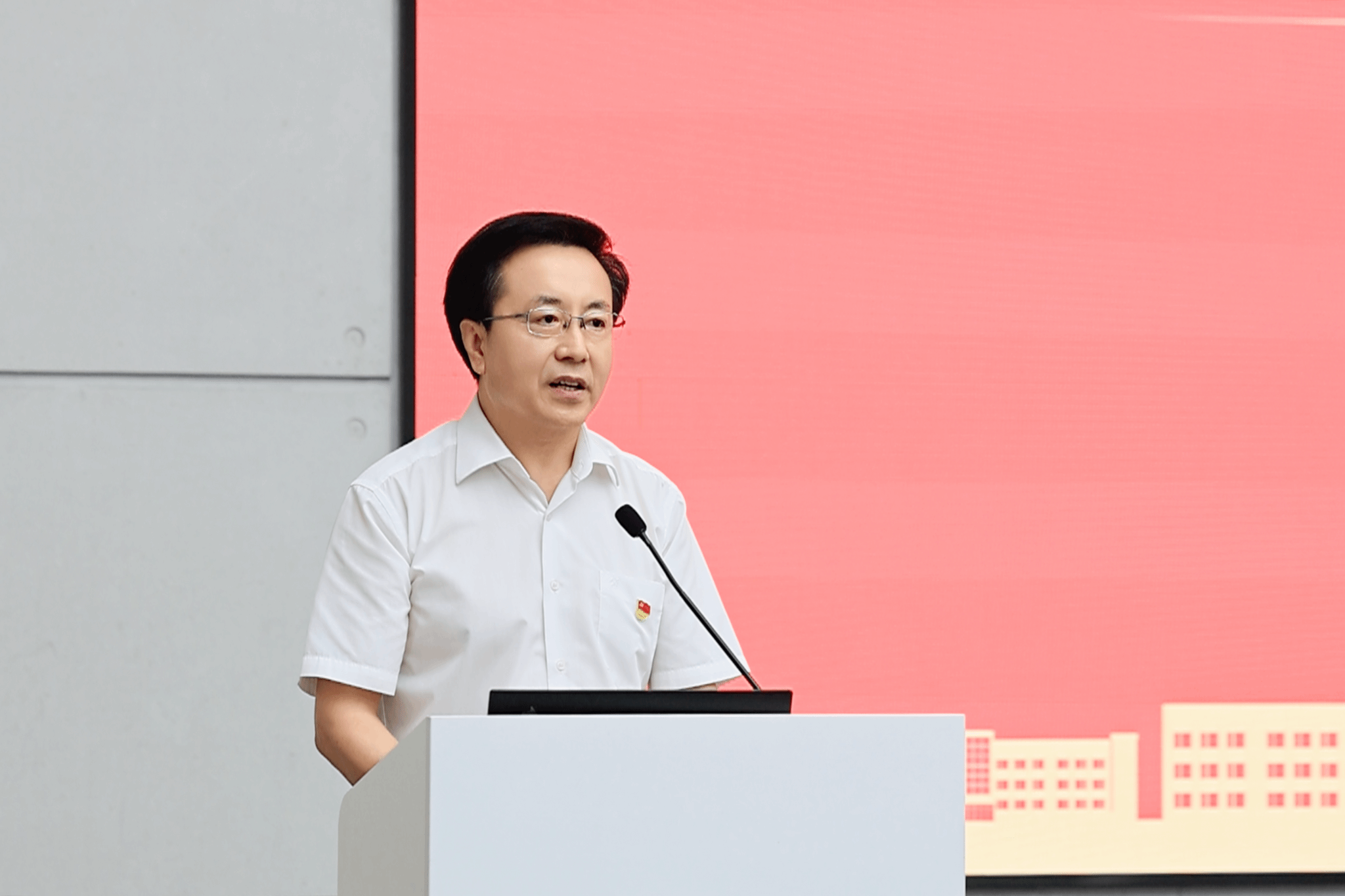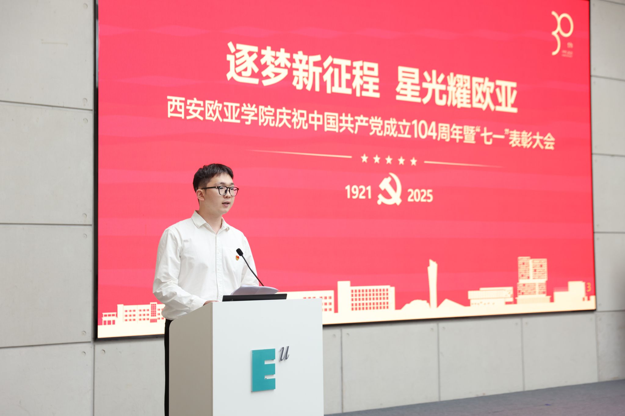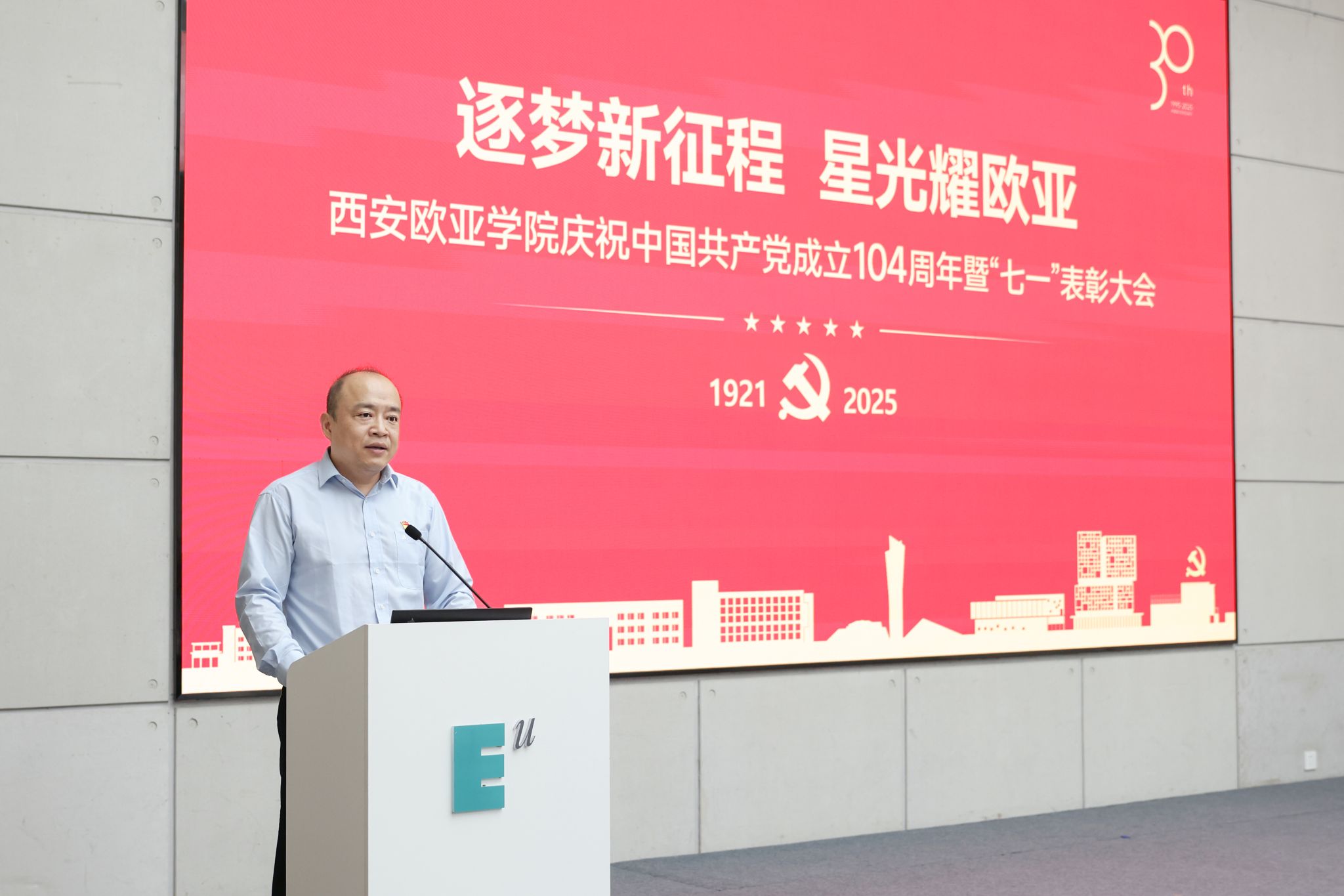 趙國華在講話中,向受表彰的集體與個人致以祝賀,回顧黨的奮斗歷程與學(xué)校黨建成果,并從五個方面部署工作。他強(qiáng)調(diào),立足新時代,奮進(jìn)新征程,以黨建為引領(lǐng),讓旗幟更紅、根基更牢:一要把黨建優(yōu)勢轉(zhuǎn)化為發(fā)展優(yōu)勢,讓活力變動能、成果促效能,以高質(zhì)量黨建賦能高質(zhì)量發(fā)展;二要弘揚(yáng)偉大建黨精神,讓堡壘更堅(jiān)固、先鋒更閃耀,讓紅色基因在育人中傳承、在創(chuàng)新中生輝;三要強(qiáng)化頭雁領(lǐng)航與榜樣帶動,讓“雙帶頭人”顯擔(dān)當(dāng)、獲獎?wù)咦魇痉?,以典型力量聚奮進(jìn)合力;四要放大黨建品牌輻射效應(yīng),讓標(biāo)桿立得穩(wěn)、特色亮得出,推動黨的建設(shè)從“標(biāo)桿引領(lǐng)”到“全面提質(zhì)”;五要以黨建“強(qiáng)引擎”驅(qū)動學(xué)校向中國一流國際化應(yīng)用型本科高校加速邁進(jìn),在教育強(qiáng)國強(qiáng)省建設(shè)中,寫就“黨建紅引領(lǐng)教育興,歐亞人建功新時代”的嶄新篇章。