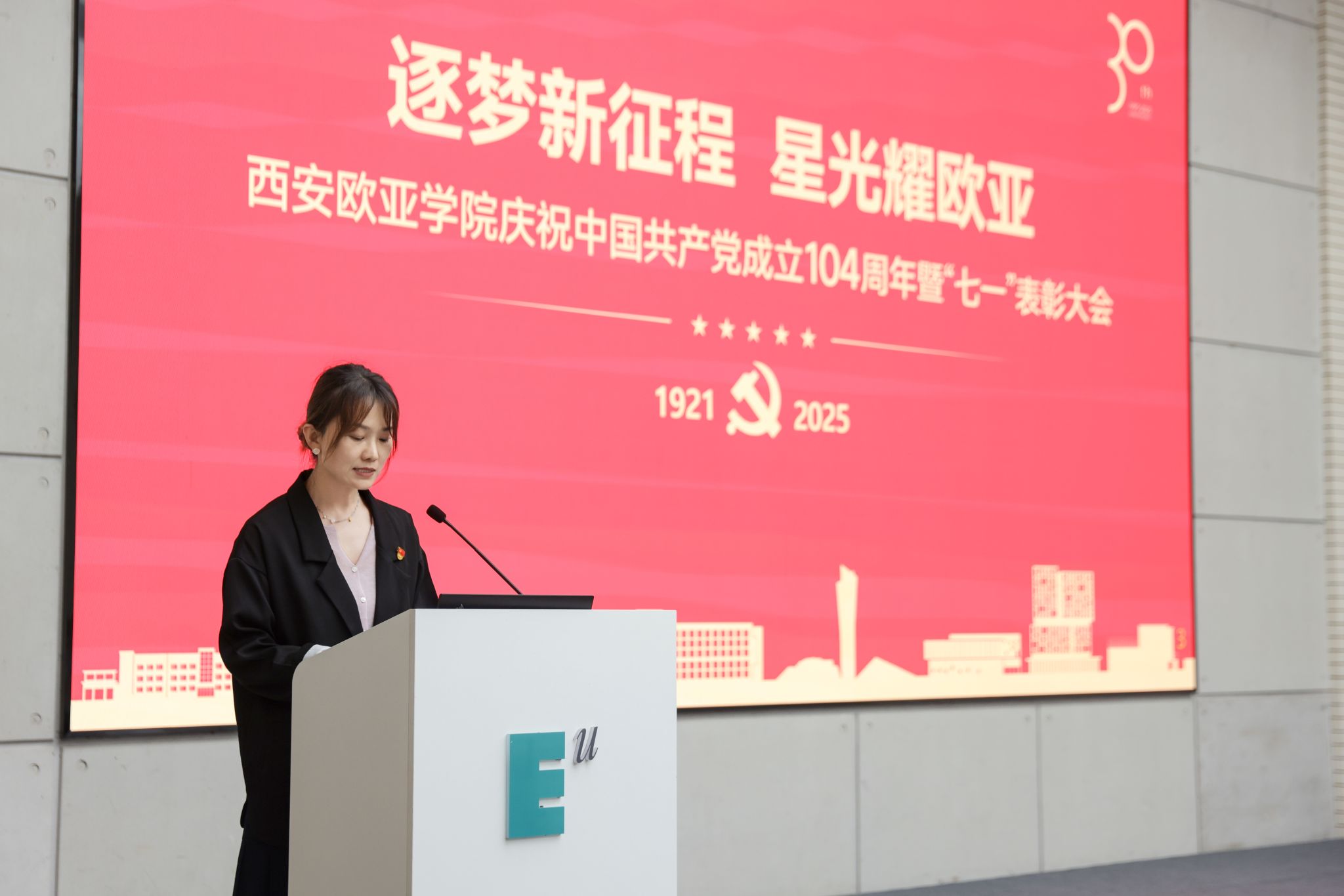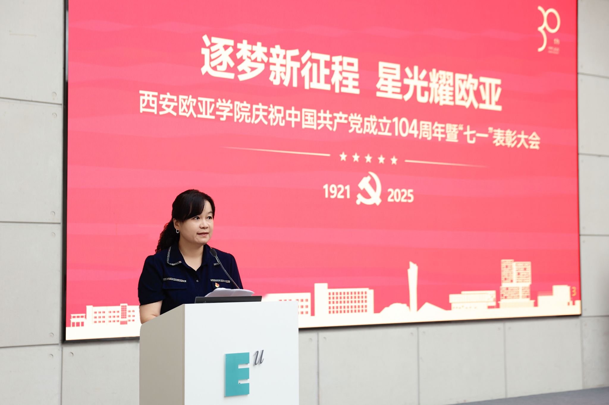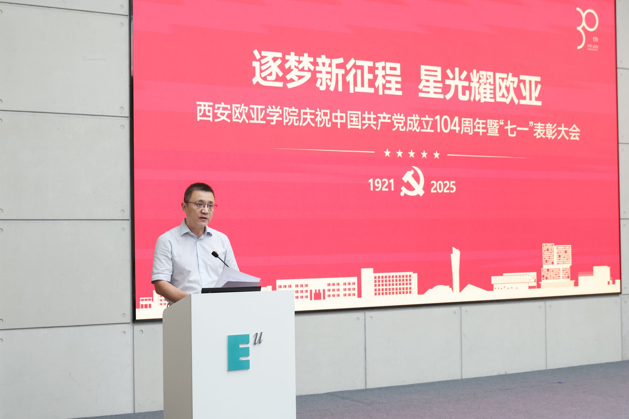 6月30日,西安歐亞學(xué)院慶祝中國共產(chǎn)黨成立104周年暨“七一”表彰大會在大學(xué)生活動中心舉行。校黨委書記趙國華,校黨委副書記、副校長張軍宏,原校黨委書記于孟晨,原校黨委副書記、紀(jì)委書記王志強(qiáng),校黨委紀(jì)委委員,各基層黨組織負(fù)責(zé)人、師生黨員、民主黨派及無黨派人士代表,受表彰的先進(jìn)集體和優(yōu)秀個人代表齊聚一堂,共慶黨的華誕,共話使命擔(dān)當(dāng)。會議由校黨委委員周嵐主持。