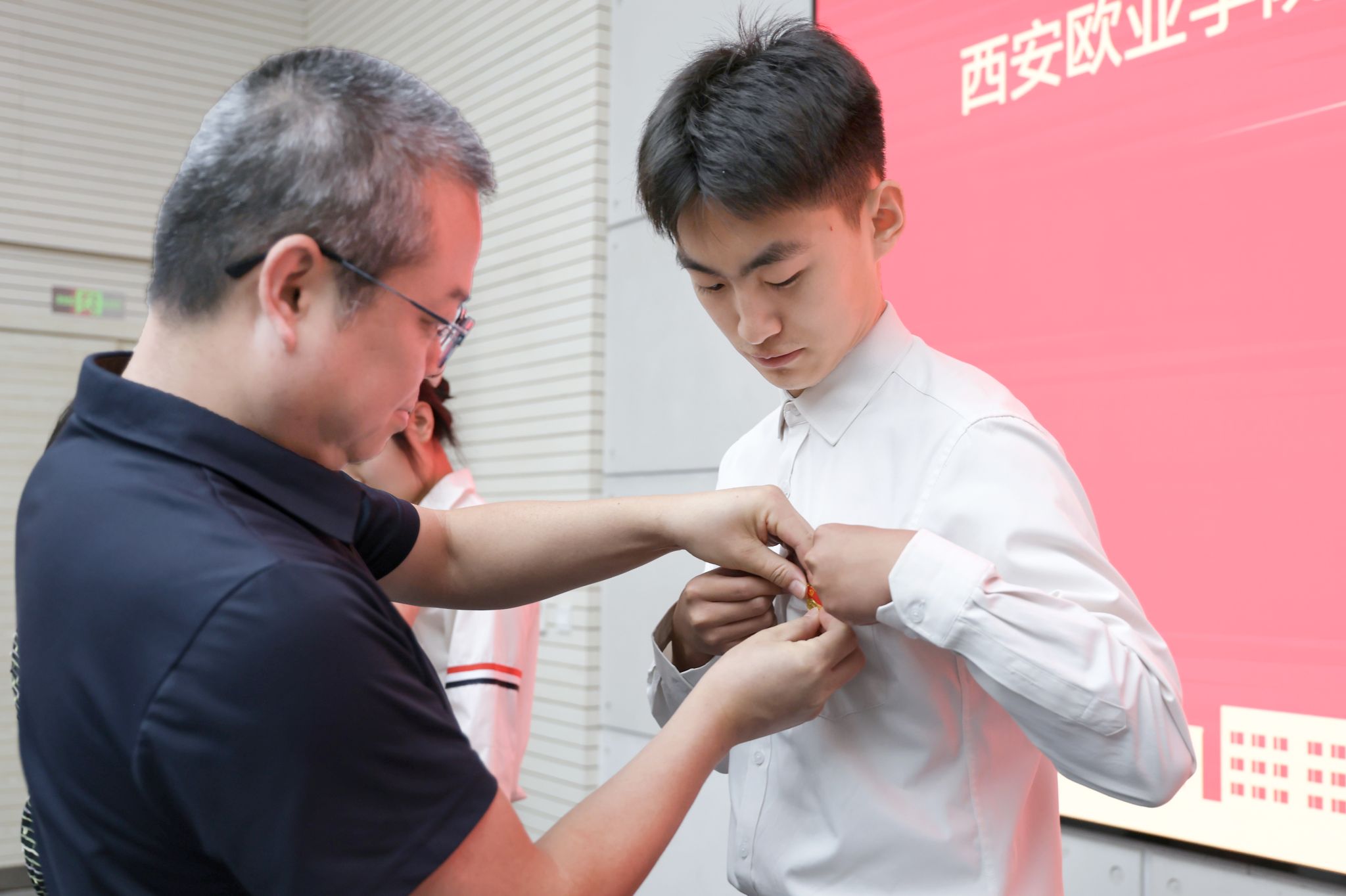 “薪火相傳”佩戴黨員徽章儀式溫情舉行。學(xué)校黨委成立后首批發(fā)展的教工黨員代表,為新發(fā)展預(yù)備黨員代表佩戴黨員徽章。一枚黨徽,是紅色基因的賡續(xù),更是初心使命的接力;一次傳遞,是老黨員的殷殷囑托,更是新黨員的錚錚誓言。新老攜手,以傳幫帶精神共赴育人征程。