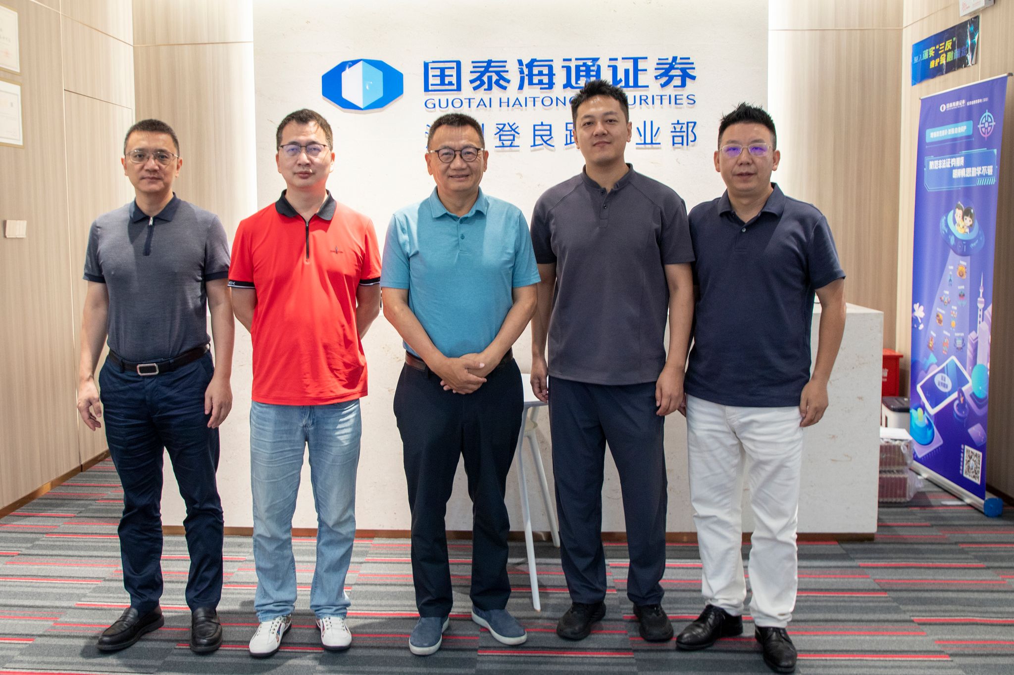 胡建波一行走訪巨翔(右二)所在的國(guó)泰海通證券股份有限公司深圳登良路證券營(yíng)業(yè)部