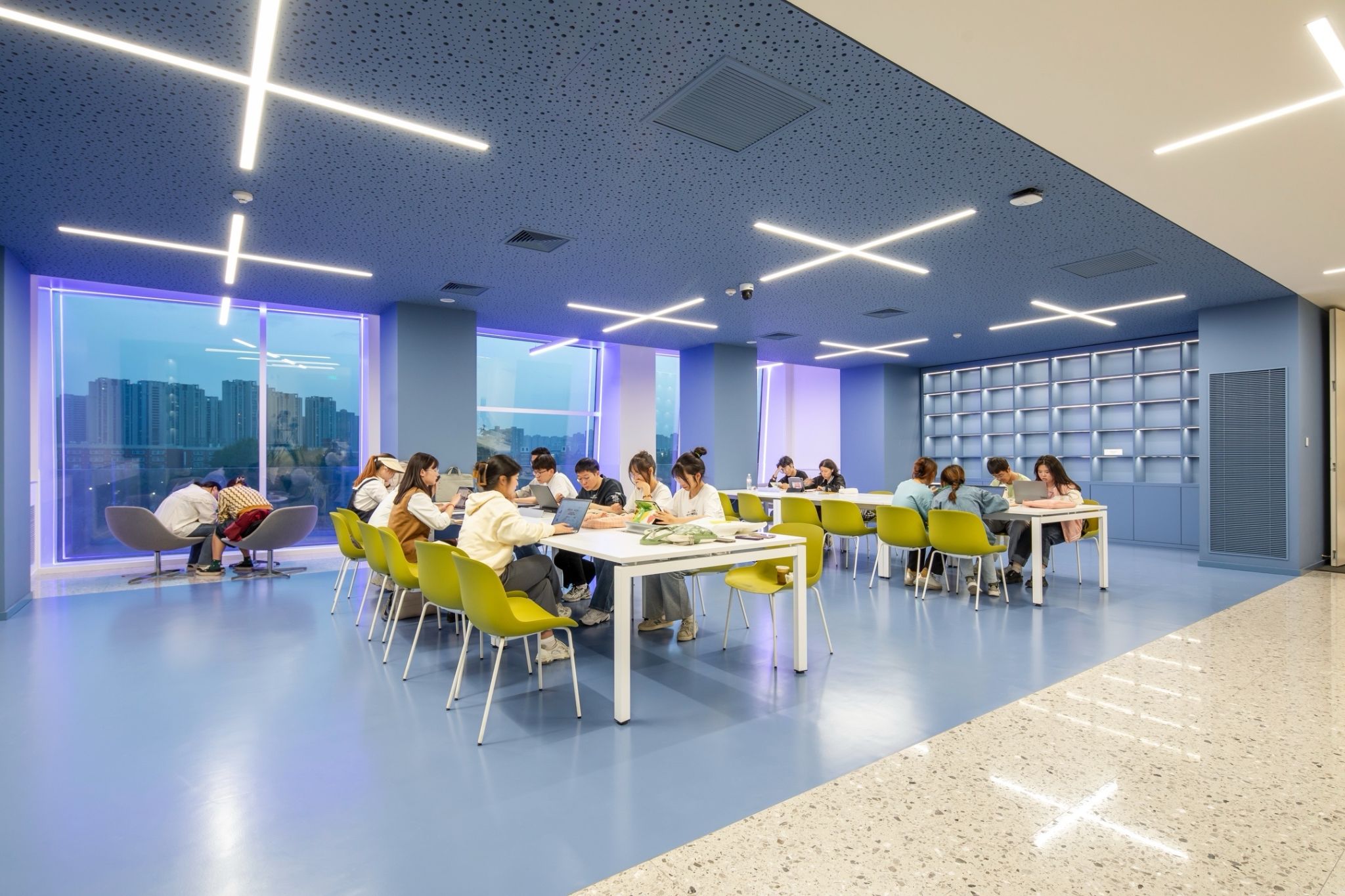 對(duì)于當(dāng)代學(xué)生而言,他們渴望主動(dòng)選擇、自由組合自己的學(xué)習(xí)方式和節(jié)奏。他們?cè)敢庾叱鼋淌?,到圖書館、草地上、共享空間中去思考、對(duì)話、協(xié)作。在這些更開放靈活的場(chǎng)所里,人的創(chuàng)造力與思維流動(dòng)性往往更容易被激發(fā)。歐亞在這方面的設(shè)計(jì)不僅拓展了學(xué)生的行動(dòng)邊界,也為他們構(gòu)建了一個(gè)可以認(rèn)同、駐足、生長(zhǎng)的精神空間。
