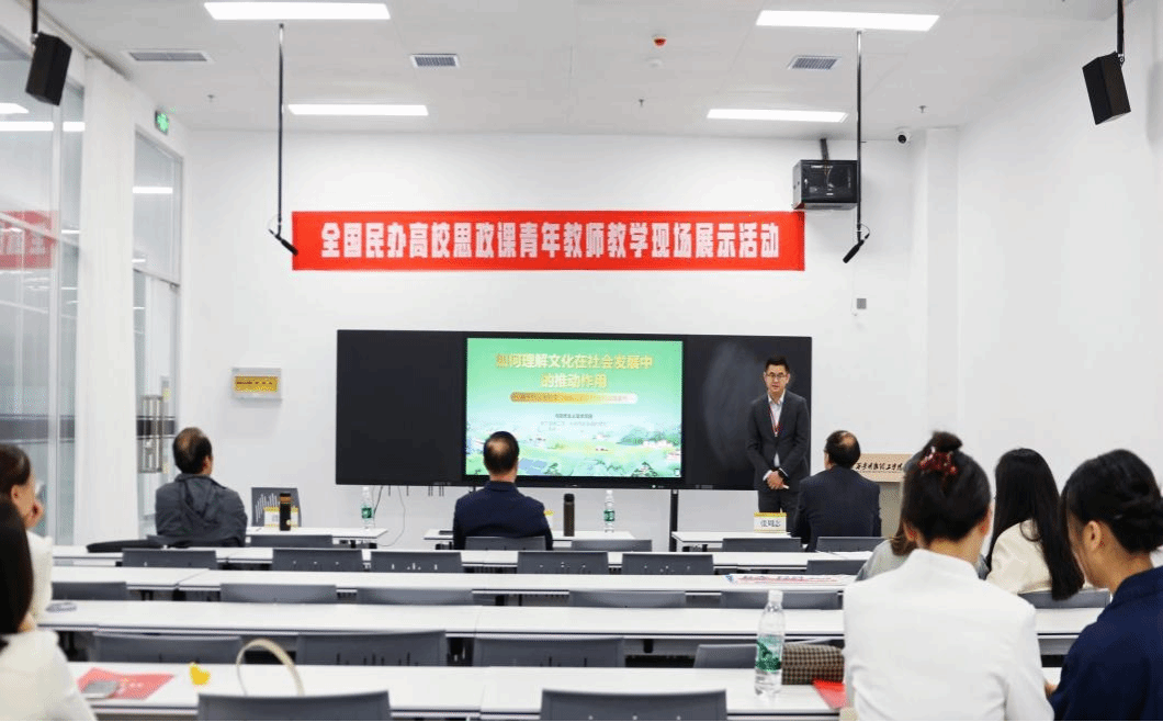 在現(xiàn)場教學展示中,劉應清老師以《如何理解文化在社會發(fā)展中的推動作用——基于舟山漁船變“金船”的鄉(xiāng)村振興實踐案例》為題,參加《馬克思主義基本原理》課程的教學展示。通過講授人的實踐活動如何轉化為強大的物質力量,劉老師闡明了文化在推動當?shù)厣鐣?jīng)濟基礎變革與發(fā)展中的重要作用。依托馬克思主義理論經(jīng)典論述,劉應清老師以清晰的邏輯框架和富有感染力的語言表達,生動呈現(xiàn)了一堂兼具思想性、趣味性和啟發(fā)性的思政課,贏得了評委們的一致好評,最終榮獲一等獎。這不僅展現(xiàn)了劉應清老師卓越的教學水平,也反映了學校在思政課教師隊伍建設、教學改革和教學質量提升方面的顯著成效,彰顯了我校作為民辦高校在思政課建設上的不懈努力與豐碩成果。