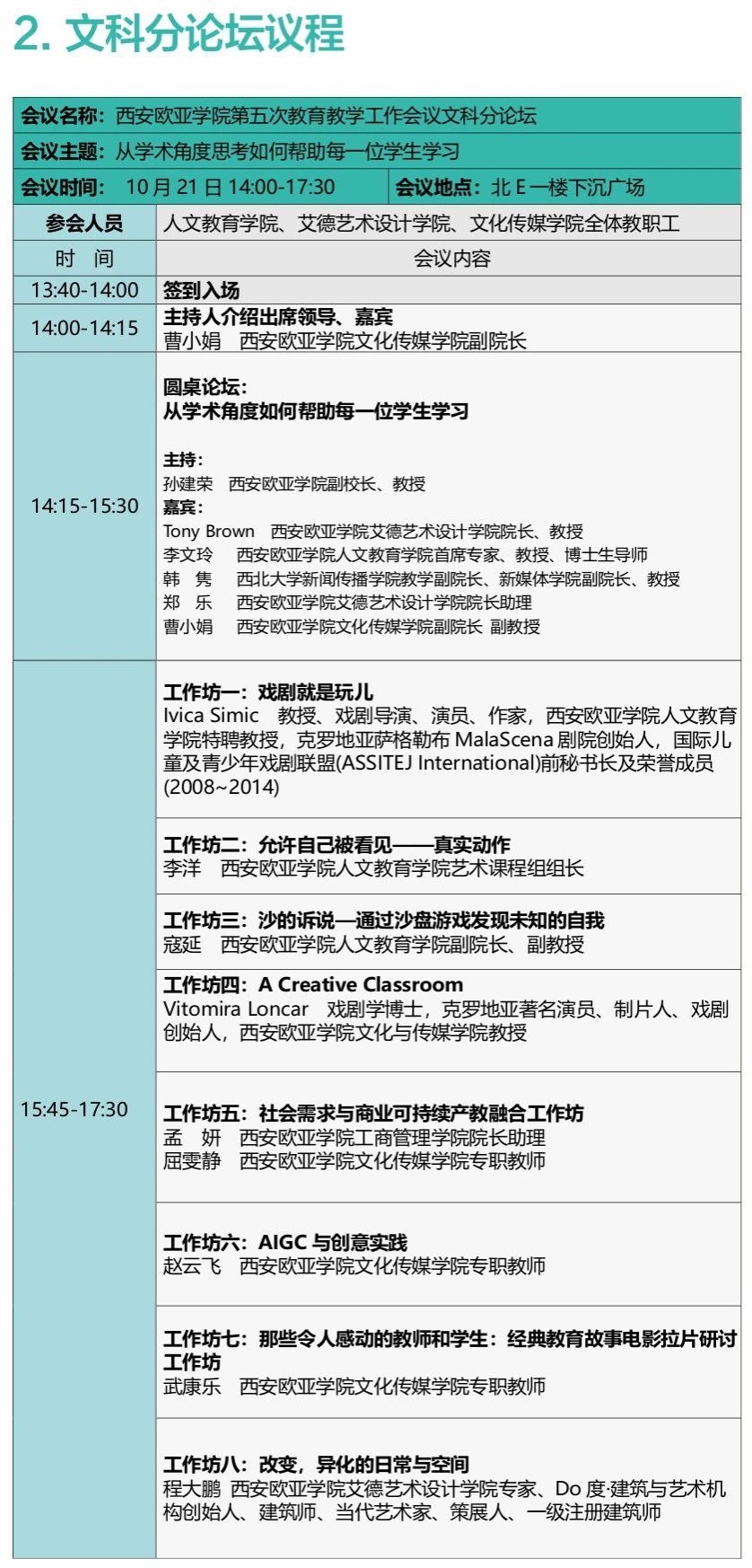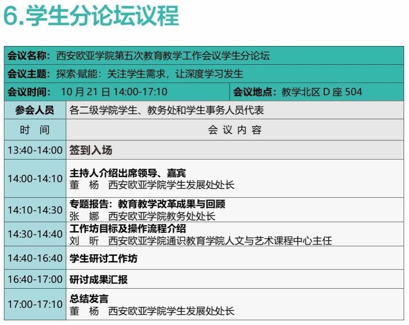 2023年10月21日至22日,西安歐亞學(xué)院第五次教育教學(xué)工作會議即將舉行。本次會議以“深耕以學(xué)生為中心育人體系,全面提升應(yīng)用型人才培養(yǎng)質(zhì)量”為主題,總結(jié)、分享、交流學(xué)校教育教學(xué)改革的經(jīng)驗(yàn),深入分析存在的問題,籌劃、部署、研討下一階段教學(xué)工作改革的思路。
