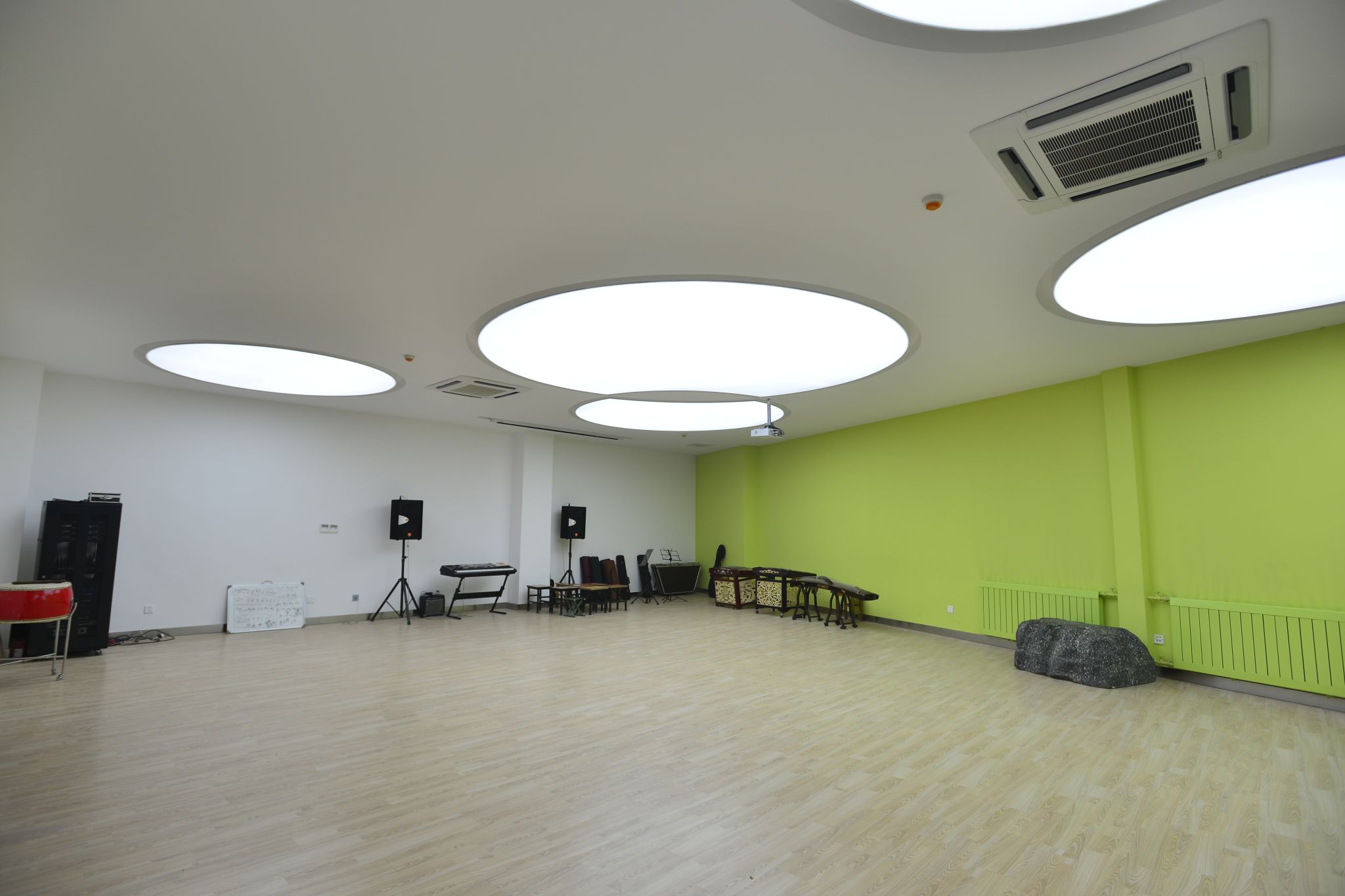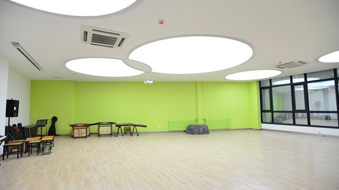 “大活”內(nèi)設(shè)形體訓(xùn)練室、多功能排練廳、聲樂訓(xùn)練室、話劇排練室等等,以滿足歐亞學(xué)子的社團活動需求,公共區(qū)域和會議室則多用于舉辦展覽,沙龍、講座等。先進的活動設(shè)施,完備的音響等設(shè)備,暖色調(diào)的墻面和燈光,讓每一位參與者都擁有置身藝術(shù)空間的既視感。