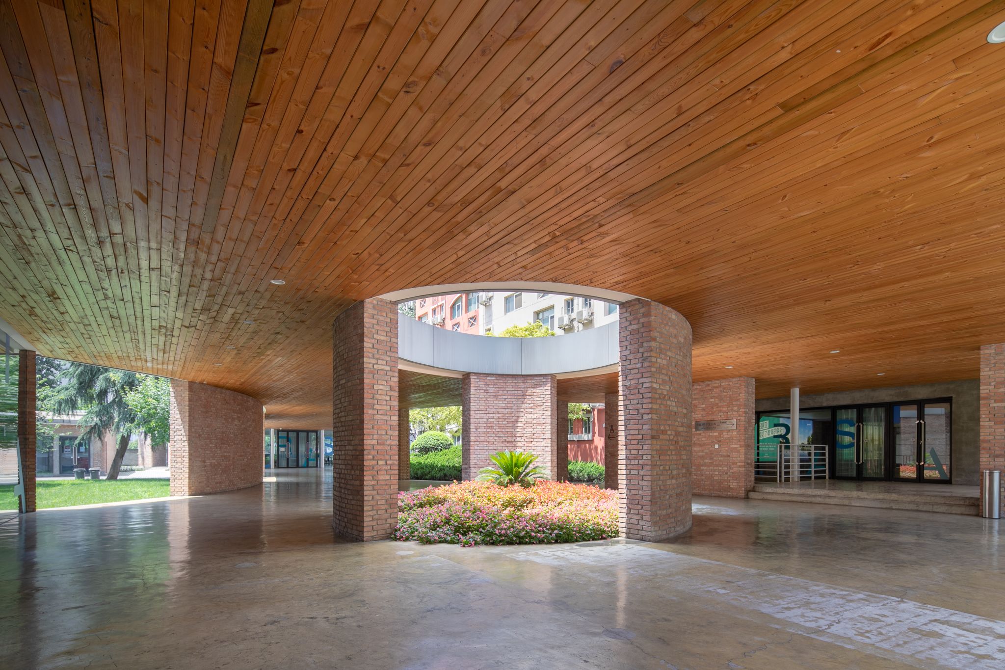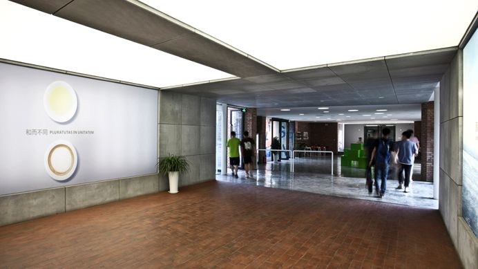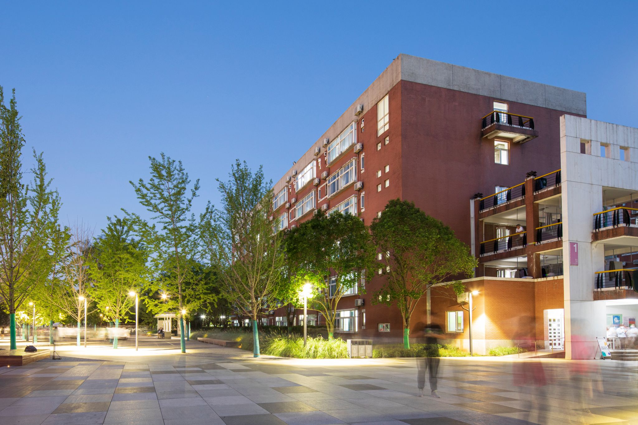 北區(qū)學(xué)生客廳于2015年10月落成,是在舊有的男生公寓樓之間,通過連廊、大廳等形成了兩個各1500㎡的類似酒店大堂的庭院建筑,在設(shè)計(jì)之初,亦突出建筑的節(jié)能環(huán)保,客廳空間由紅磚、清水混凝土砌筑而成,走廊引入自然光照明?!翱蛷d”內(nèi)設(shè)學(xué)習(xí)中心、服務(wù)中心、健身房、瑜伽室、洗衣房、浴室、便利店、心理咨詢室、情緒宣泄室等20多個不同的功能空間,滿足了學(xué)生學(xué)習(xí)生活多方面的需求。