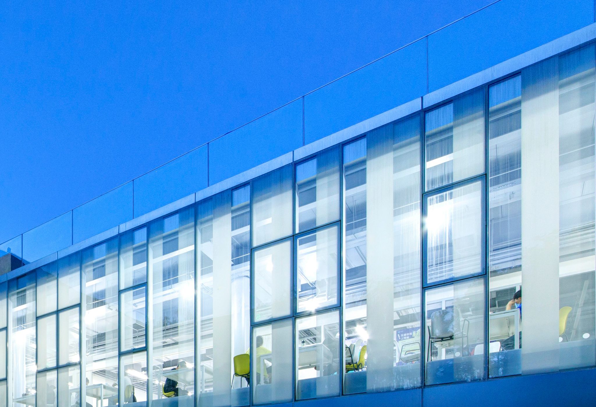 南區(qū)學(xué)生客廳,于2020年投入使用,在原有的公寓樓四合院里,將4棟樓用大面積的玻璃及鋼結(jié)構(gòu)材料連接起來,形成了一個70多米長的通廊,隨光影變化而若隱若現(xiàn)。